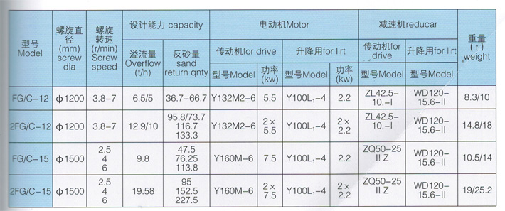 主要用于金属选矿流程中对矿浆进行力度分级,根据螺旋数量可以分为单螺旋,双螺旋;根据螺旋叶片浸入溢流面深度可分为高晏式、沉没式两种。前者用于溢流粒度0.83-0.15mm的矿石分级,后者用于溢流粒度0.15-0.07mm的矿石分级。