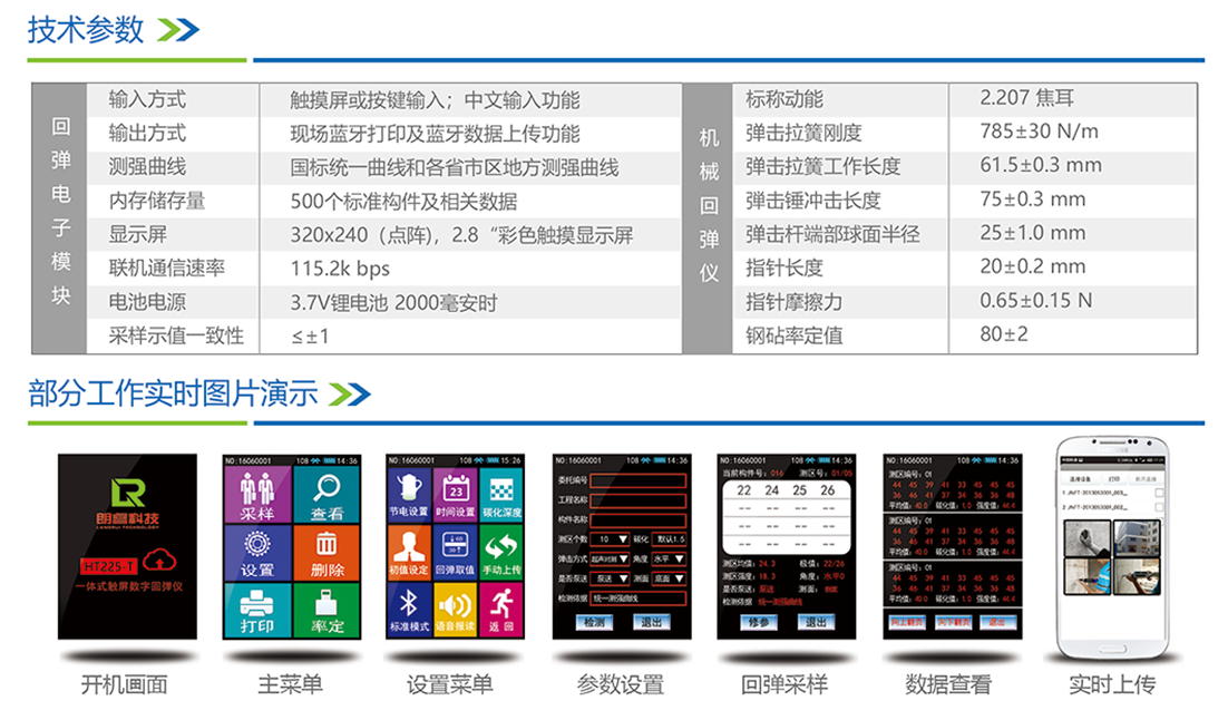 云回弹功能:配合朗睿科技手机APP软件可以实现回弹数据现场实时上传。